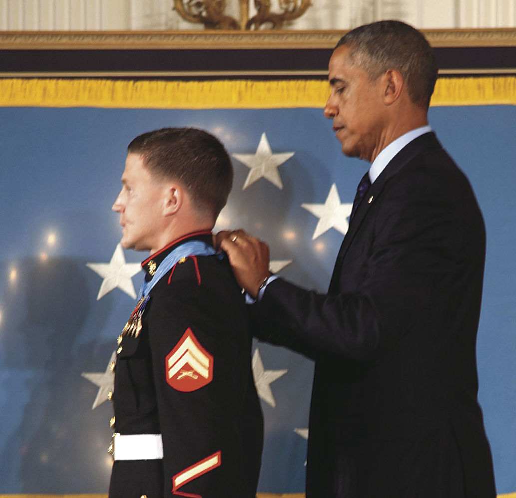 Carpenter, the youngest living Medal of Honor recipient, received the medal from President Barack Obama for throwing himself in front of a live enemy hand grenade to protect a fellow Marine.